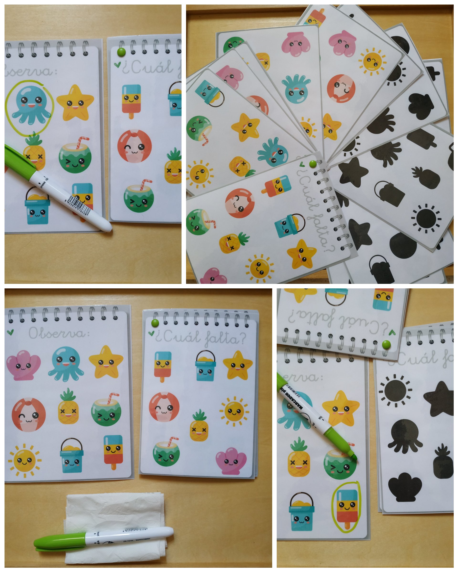 Nosotros los tenemos plastificados y los unimos con velcros de 2cm, que entran perfectamente. Además los tenemos unidos con anillas de colores y los almacenamos en sobres tamaño A5, que son traslúcidos y se ve que material hay en el interior para tenerlos organizadas.
