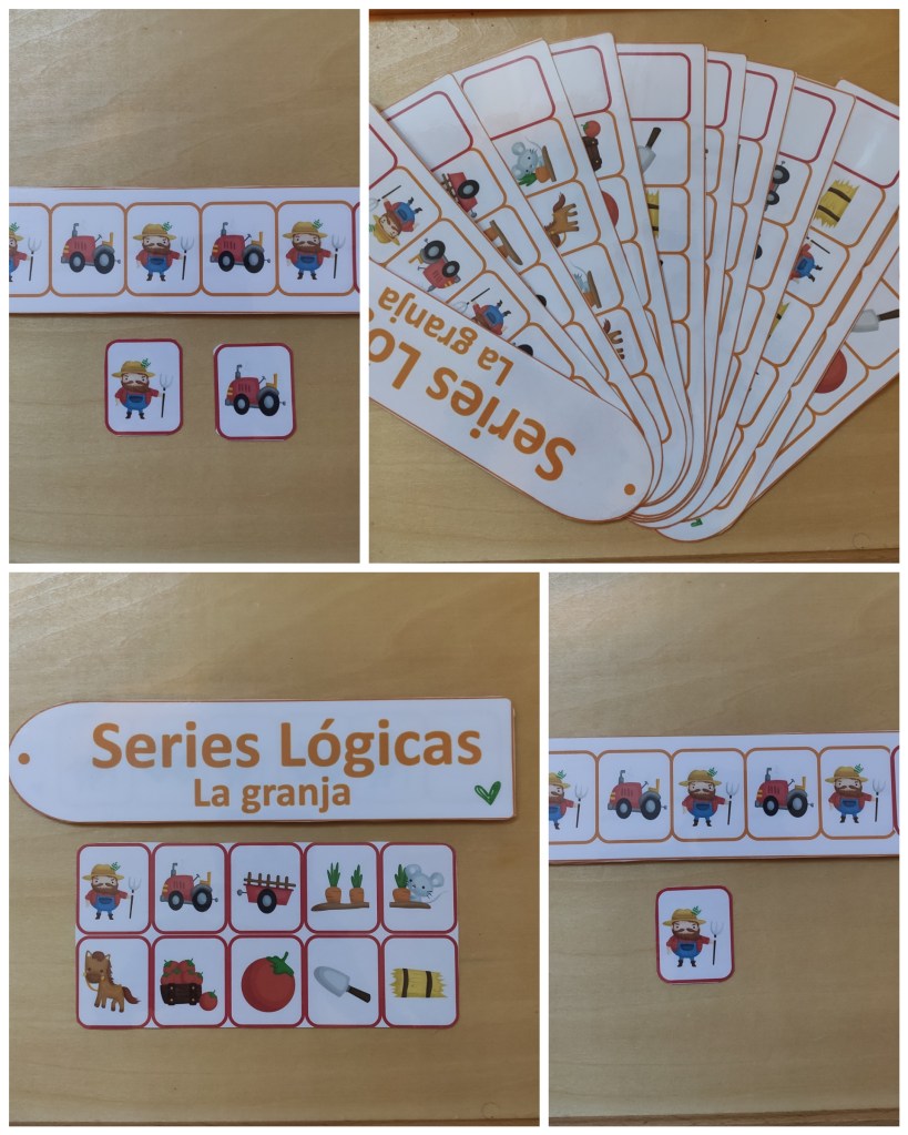 Os dejo otra serie lógica en formato llavero, por su comodidad para trabajar, aunque para guardar el material usamos unos sobres traslucidos de tamaño A5 para que no se pierdan las mini tarjetitas de imágenes. Las imágenes de la granja.