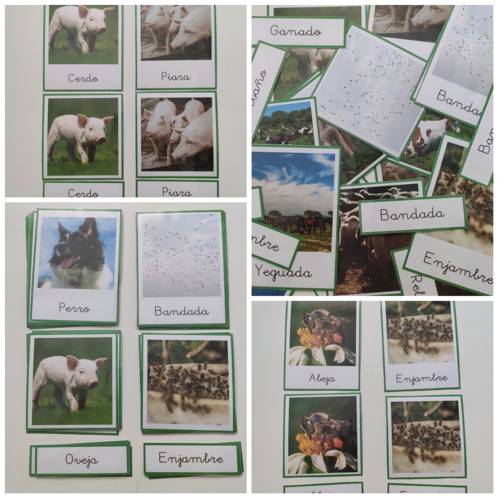 En el blog hay muchísimas tarjetas tres partes sobre animales, lo sé pero os voy a dejar unas más. En este caso tenemos los animales y como se nombran los colectivos correspondientes. Podemos usar las tarjetas de forma independiente (primero los animales, luego los colectivos) o combinarlas, de forma que asocien cada animal con su correspondiente nombre grupal